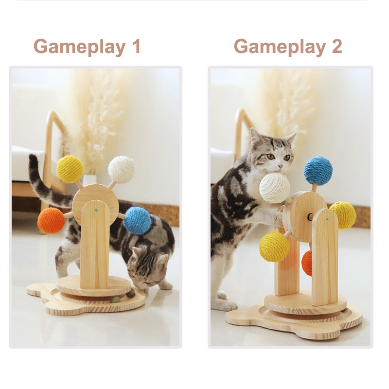 Wood Cat Scratcher Self Fun Cat Toy Sisal Ball With Catnip